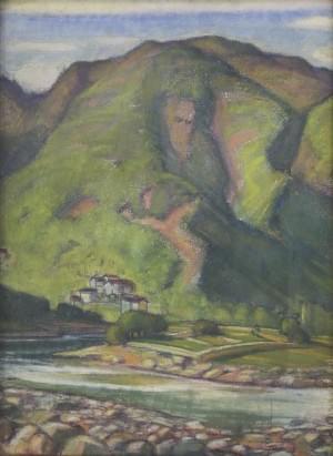 Paysage de montagne, cachet d'atelier, 1890-1974, pastel gras su...