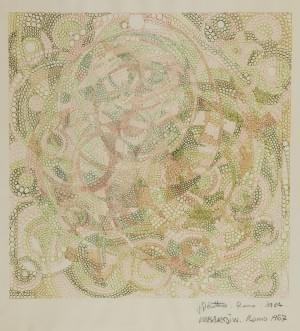 Composition abstraite, crayon de couleur, signée, localisée Roma...