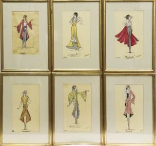 Suite de six études de costumes, gouache sur papier, portant l'a...