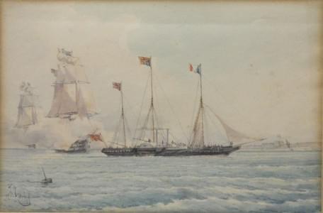 Marine, aquarelle, monogrammée EB, 18x23 cm