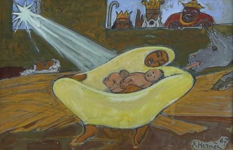Nativité, gouache et encre sur papier, signée et datée 67, 22x34...