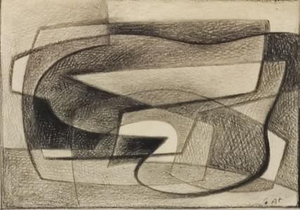 Composition abstraite, mine de plomb sur papier, monogrammée, 15...