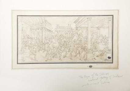 L'enlèvement des Sabines, encre sur papier, 20x42 cm. Cf Nationa...