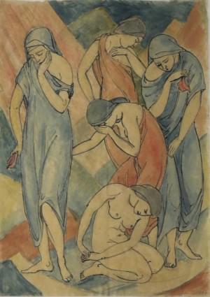 Lamentations, encre et aquarelle sur papier, daté 1922, 46x34 cm