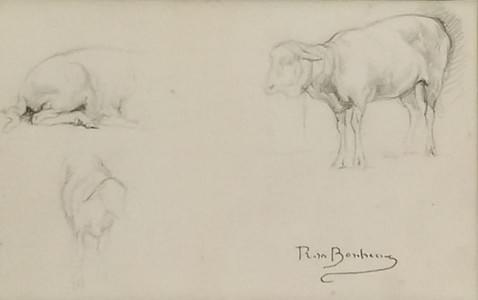 Etudes de sanglier, moutons et vaches, mine de plomb, vente Rosa...