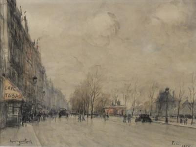 Boulevard, Paris 1951, aquarelle, 26x34 cm