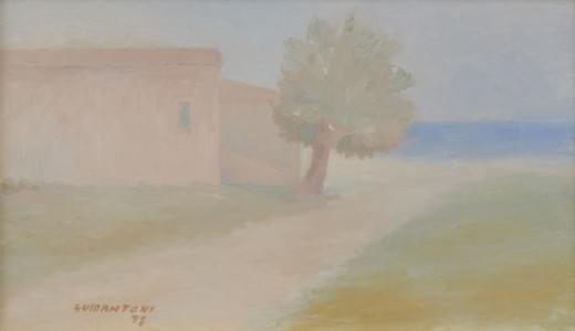 Arbres et maisons, huile sur toile marouflée, signée, 29x48 cm....