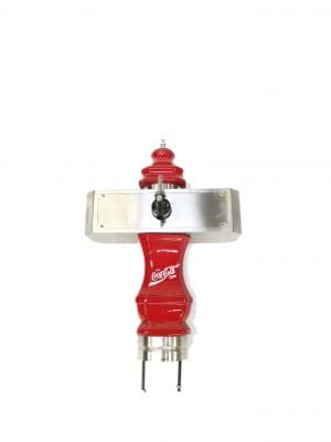 Un robinet, inox, corps en faïence rouge plexiglas aux couleurs...