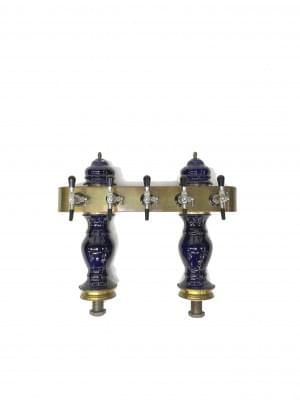 Quatre robinets, métal et corps en porcelaine bleu nuit, H 61 cm