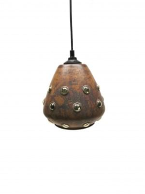 Suspension conique, cuivre patiné et verre soufflé, H 20 cm