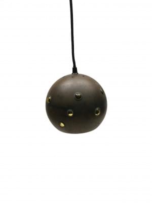 Suspension boule, cuivre patiné et verre soufflé, 14x16 cm