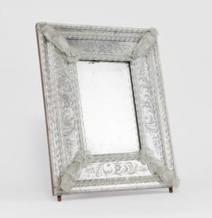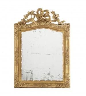 Bois sculpté et redoré, glace au mercure, 65x45 . Provenance: co...