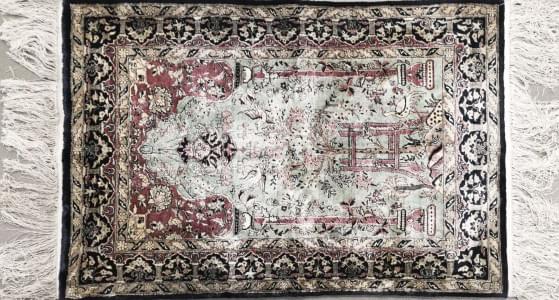 Soie, à décor d'un mirhab sur fond céladon, 95x62 cm