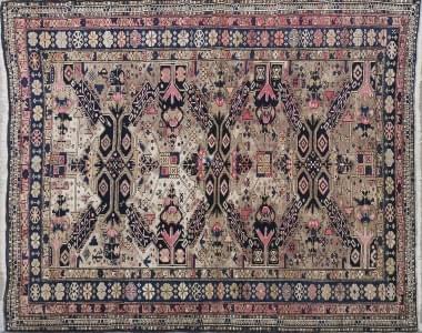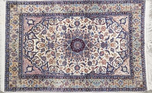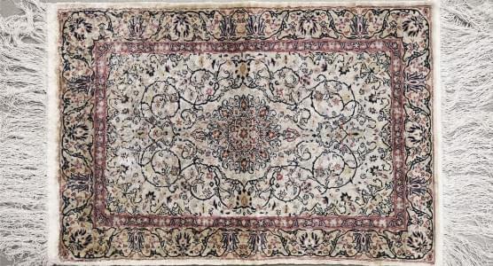 Laine à décor d'un médaillon central de rinceaux sur fond beige,...