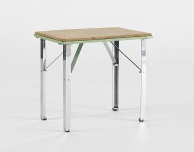 Liège, bois laqué vert d'eau et métal chromé, 43x47x31 cm. Prove...