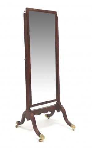 Acajou et laiton, pieds griffes, H 150 cm. Provenance: collectio...