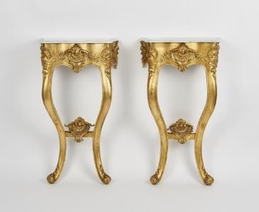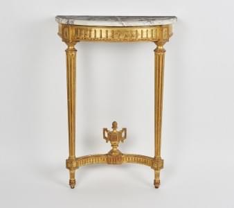 Bois doré et marbre blanc 87x44x23 cm. Provenance: collection Pe...