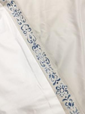 Tissu beige, bandeau au pochoir bleu, Isabelle de Borchgrave, 30...