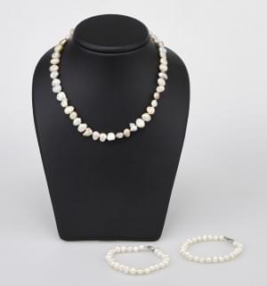 3200. Lot d'un collier et de deux bracelets de perles d'eau douce
