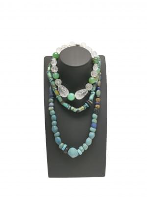 L'un composé de perles de lapis-lazuli ponctuées de turquoises,...
