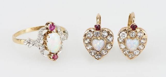 3218. Ensemble de bijoux sertis de grenat comprenant :
