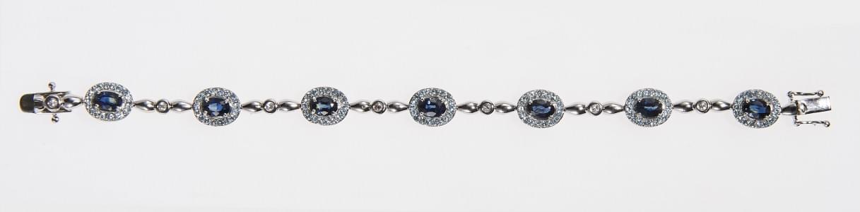 3221. Bracelet ligne composé de motifs sertis de saphirs taille ovale...