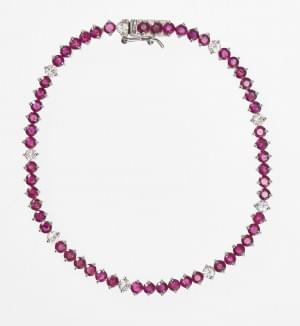 3234. *Bracelet ligne serti de rubis probablement synthétiques alterné...