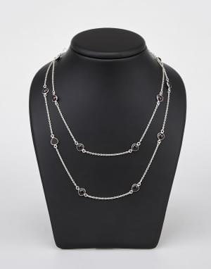 3237. *7129 Sautoir à maille forçat ponctuée de grenats taille poire c...