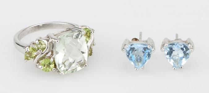Argent 925, doigt 55-15. On joint des clous d'oreilles sertis de...
