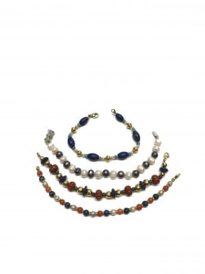 3241. Lot de trois bracelets composés de diverses pierres et perles do...