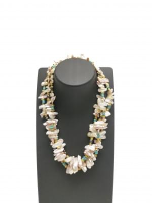 3243. Sautoir composé de perles baroques alternées de turquoises, de p...