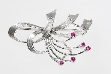 3281. Broche nœud sertie de lignes de rubis calibrés et de diamants