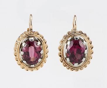 3258. Dormeuses serties de rhodolites taille ovale (env. 2,5 ct)