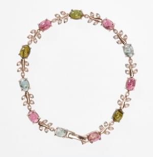 3265. *7210 Bracelet serti de tourmalines multicolores taille cabochon...