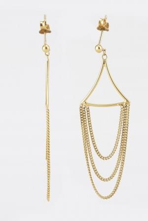 3271. Boucles d'oreilles stylisées souples retenant trois lignes de ma...