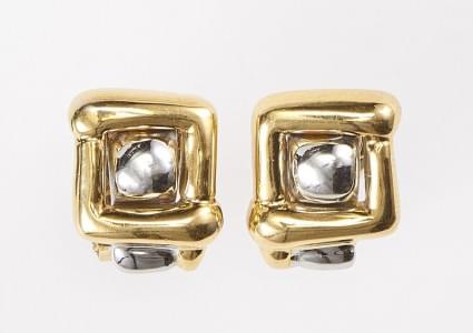 Or 750, L 6,5 et 7 cm, poids brut 6. Provenance: collection Pern...
