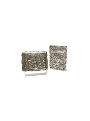 3714. Tabatière et étui à cigarettes à motif de divinités et rinceaux