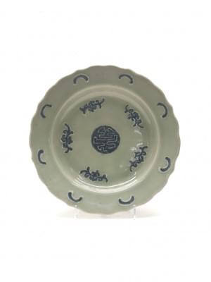 Porcelaine à fond céladon et décor bleu, XIXe s, 23 cm. Provenan...