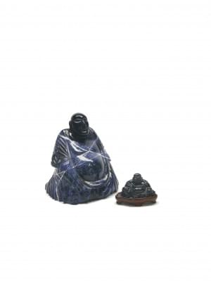 3801. Deux Bouddhas, pierre dure bleue, figurés assis, Chine