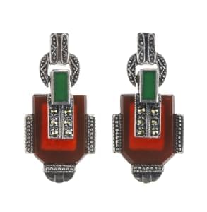 3002. *Pendants d'oreilles Art déco sertis de plaques de cornalines et...