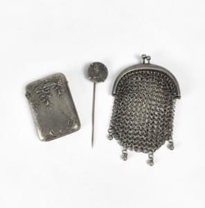 Un porte-monnaie à maille souple, un étui à allumettes à décor f...