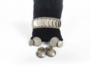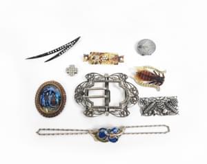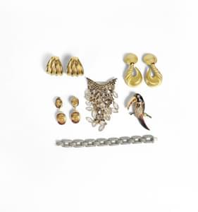 Un bracelet, deux broches et trois paires de clips d'oreilles, m...