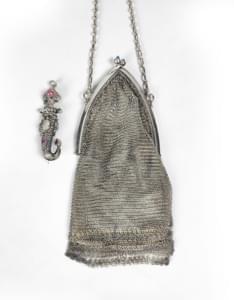 3023. Lot d'un petit sac du soir à maille souple et d'une broche poign...