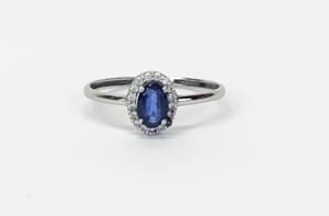 3025. Bague marguerite sertie d'un saphir taille ovale (env. 0,4 ct) e...