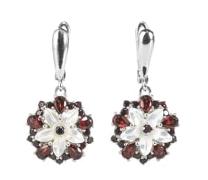 3031. *Pendants d'oreilles ornés de fleurs en nacre entourées de grena...