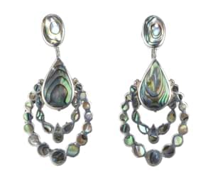 3032. *Pendants d'oreilles ajourés sertis de nacre bleue et verte iris...
