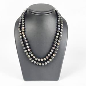 3034. Collier composé de deux rangs de perles d'eau douce noires viola...