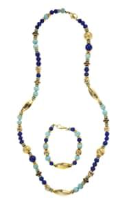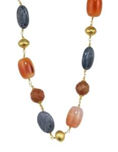 3063. *Collier composé de perles de cornaline et pierres bleues polies