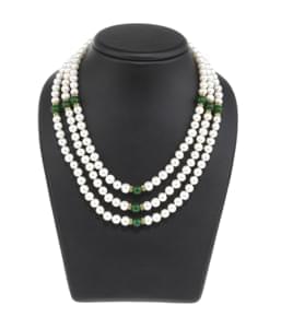 L'un composé de trois rangs de perles d'eau douce et de corail,...