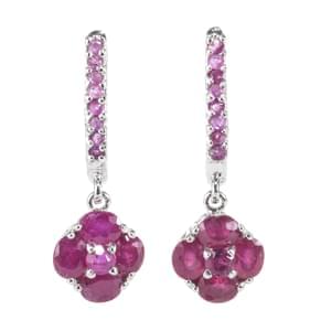 3057. *Pendants d'oreilles retenant des fleurs pavées de rubis et reha...